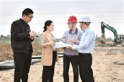 图为杜远虑(左二)深入彭山区工业大道道路改造工程项目建设现场,走访了解相关情况。盛晓波 摄