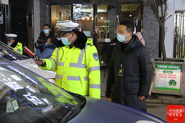 节日期间,贵州省毕节市威宁县纪委监委联合公安部门,开展党员干部、公职人员饮酒驾驶、公车私用监督检查。(贵州省毕节市威宁县纪委监委 余崇祺 摄)